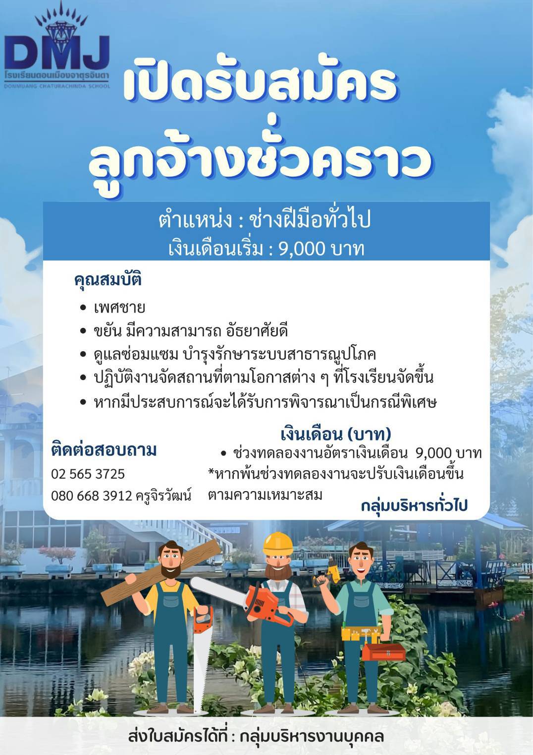 วันที่ 1 ต.ค. 2568 ประกาศ เรื่อง รับสมัครลูกจ้างชั่วคราว ตำแหน่งช่างฝีมือทั่วไป |